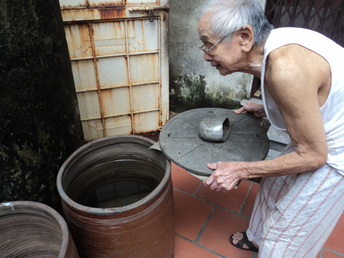 Điều đặc biệt là tình trạng nhiều hộ dân (đặc biệt là các hộ ở giữa và cuối ngõ) bị cắt nước liên tiếp, kéo dài liên miên từ ngày này sang ngày khác chứ không phải chỉ bị mất nước cục bộ trong một đôi ngày như kiểu điều chỉnh cắt nước luân phiên giữa các khu vực. Vẫn biết là bất tiện nhưng chẳng còn cách nào khác”. Trông mong hết vào nguồn nước giếng khoan và… nước nhà hàng xóm Từ khi nguồn nước máy bị cắt, một số hộ đành quay lại sử dụng nước giếng khoan - nguồn nước vốn đã bị “bỏ xó” từ lâu.